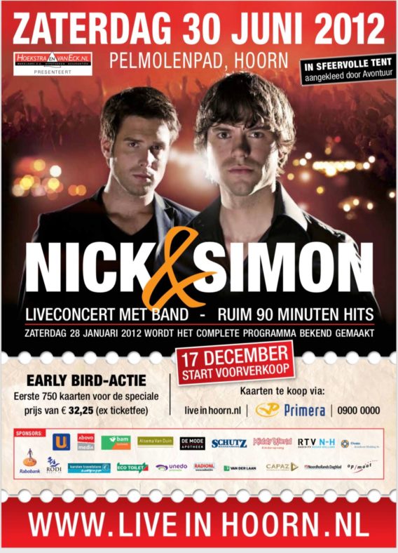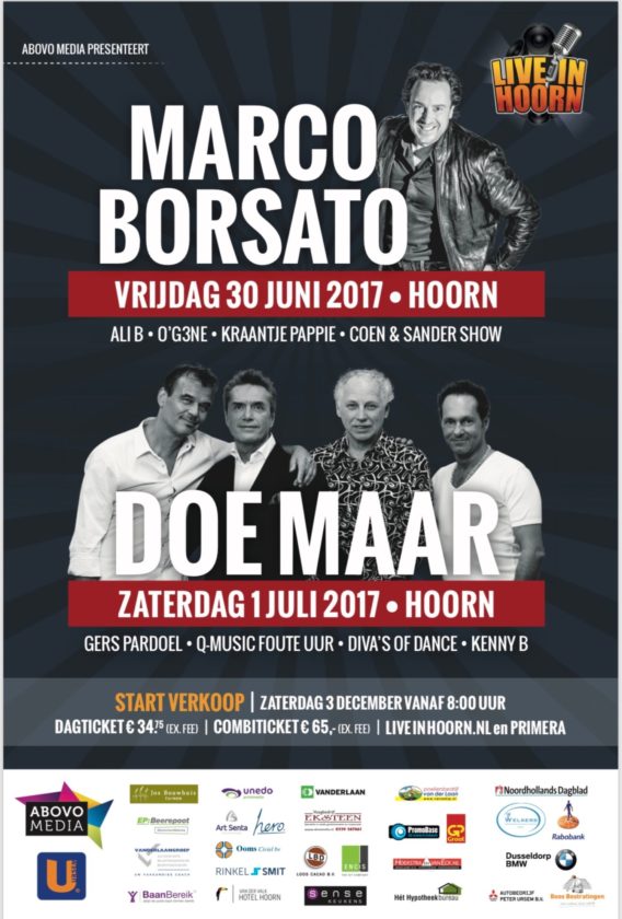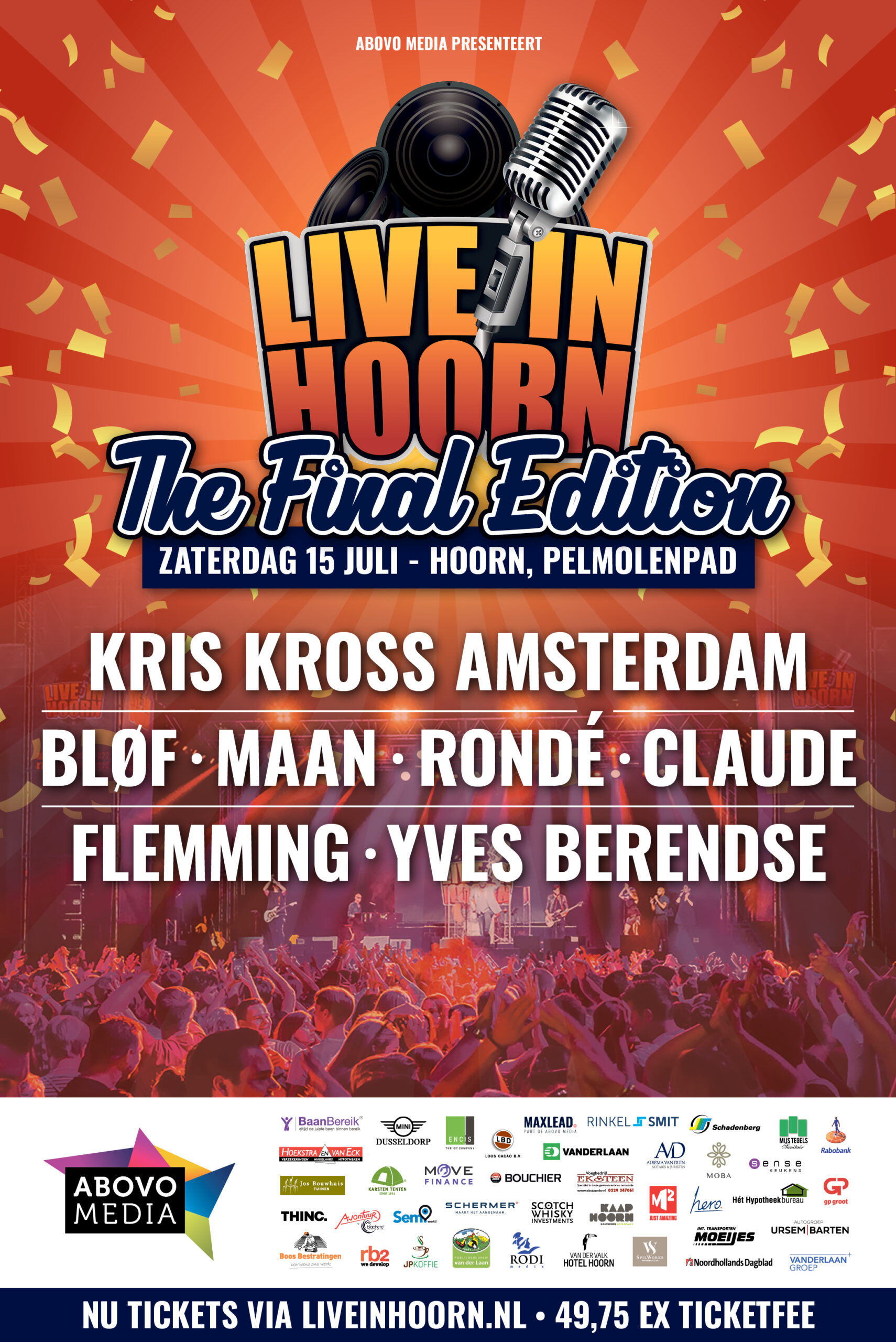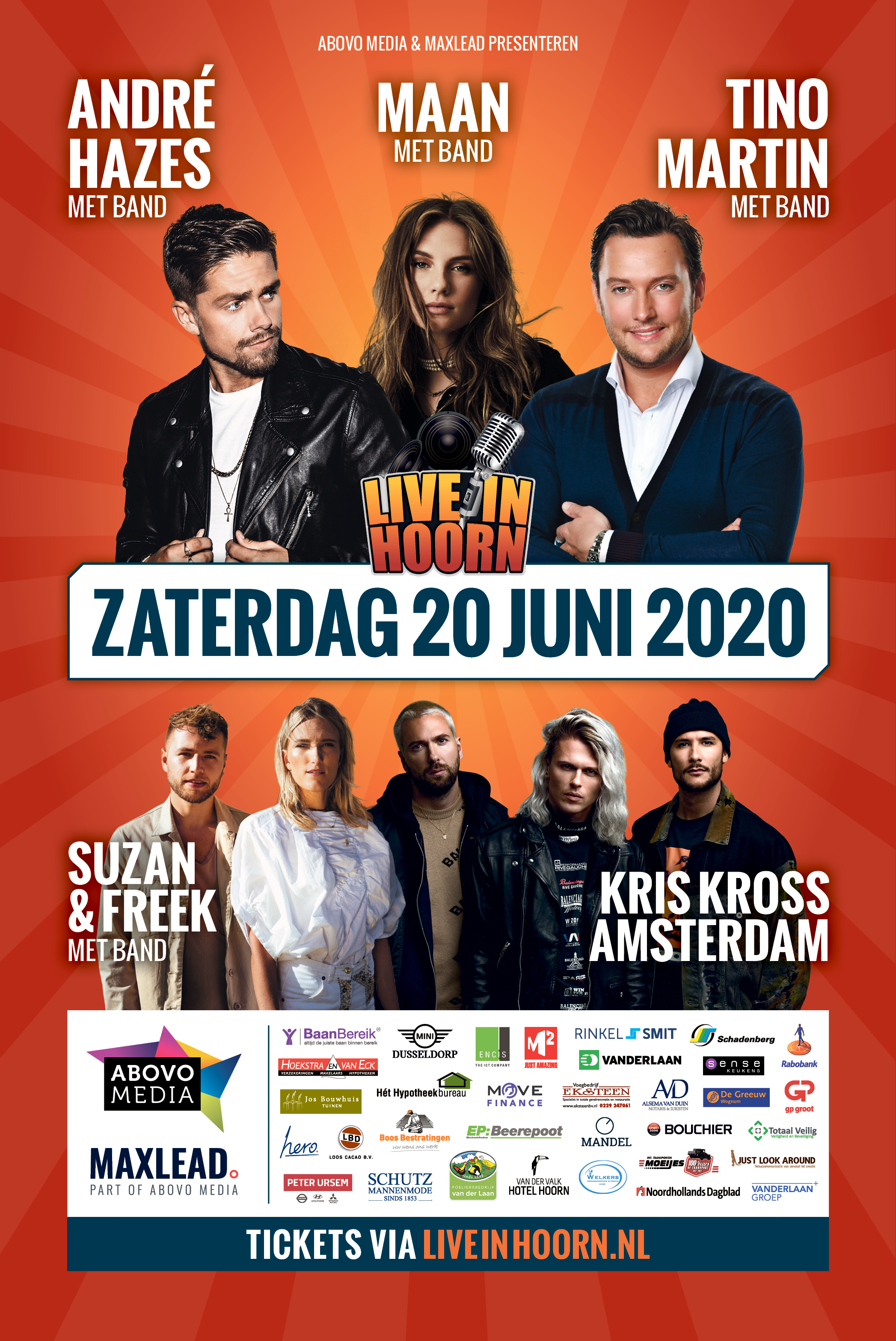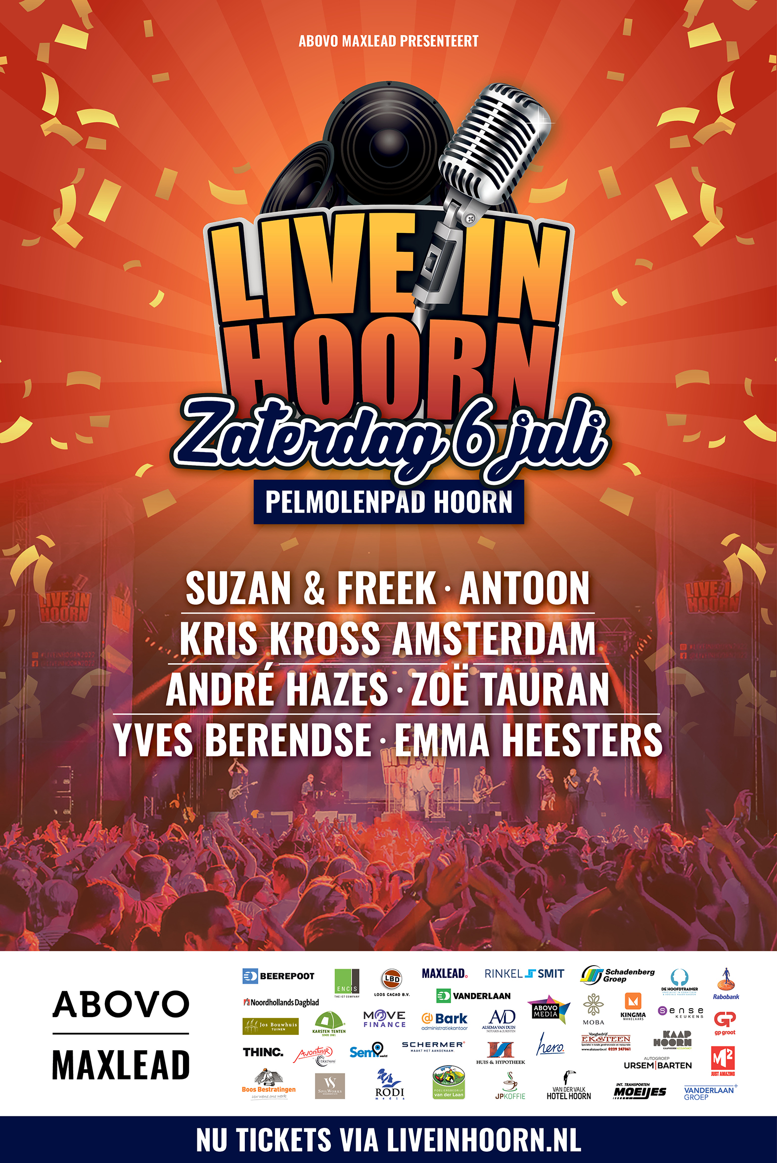 Live in Hoorn staat garant voor een onvergetelijk muziekfeest, met een gigantische feesttent steevast als stralend middelpunt. Vrijwel alle grote namen hebben vanuit hier het enthousiaste publiek veroverd; Doe Maar, Marco Borsato, Kensington, Bløf, Guus Meeuwis, Jan Smit, André Hazes, Son Mieux, Roxy Dekker, Dolly Dots, Suzan & Freek, Davina Michelle en K3. En nog vele topartiesten zullen volgen…